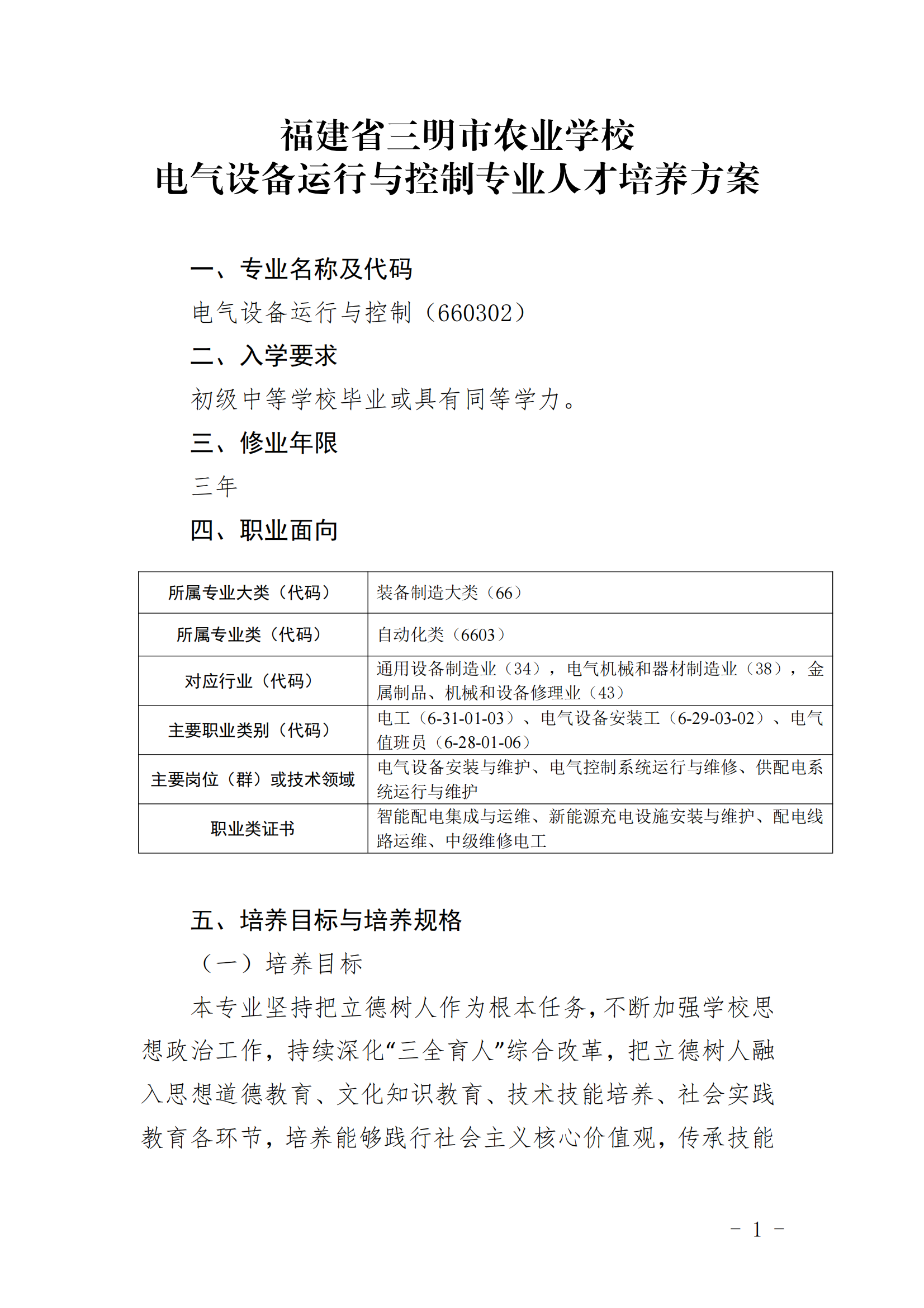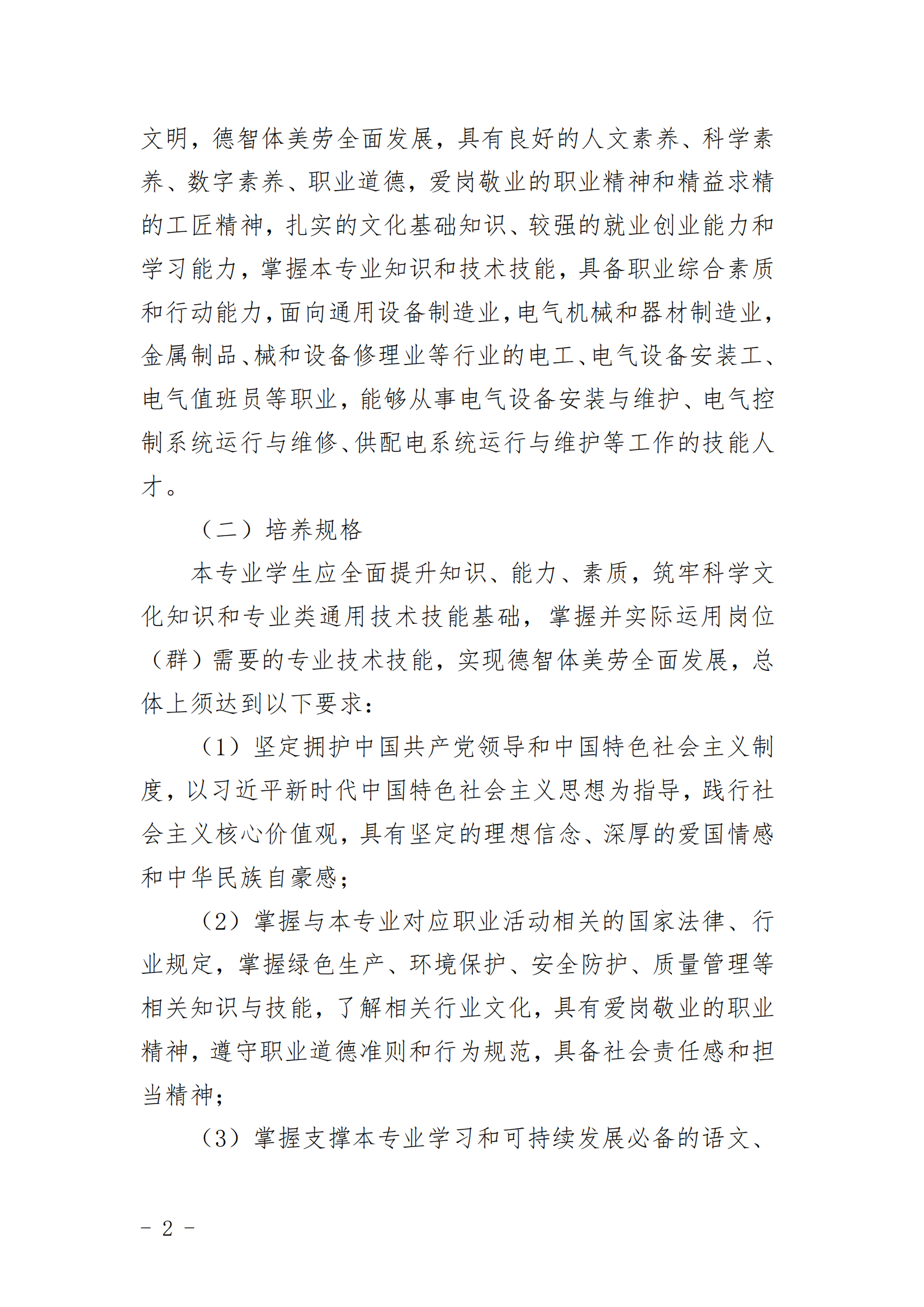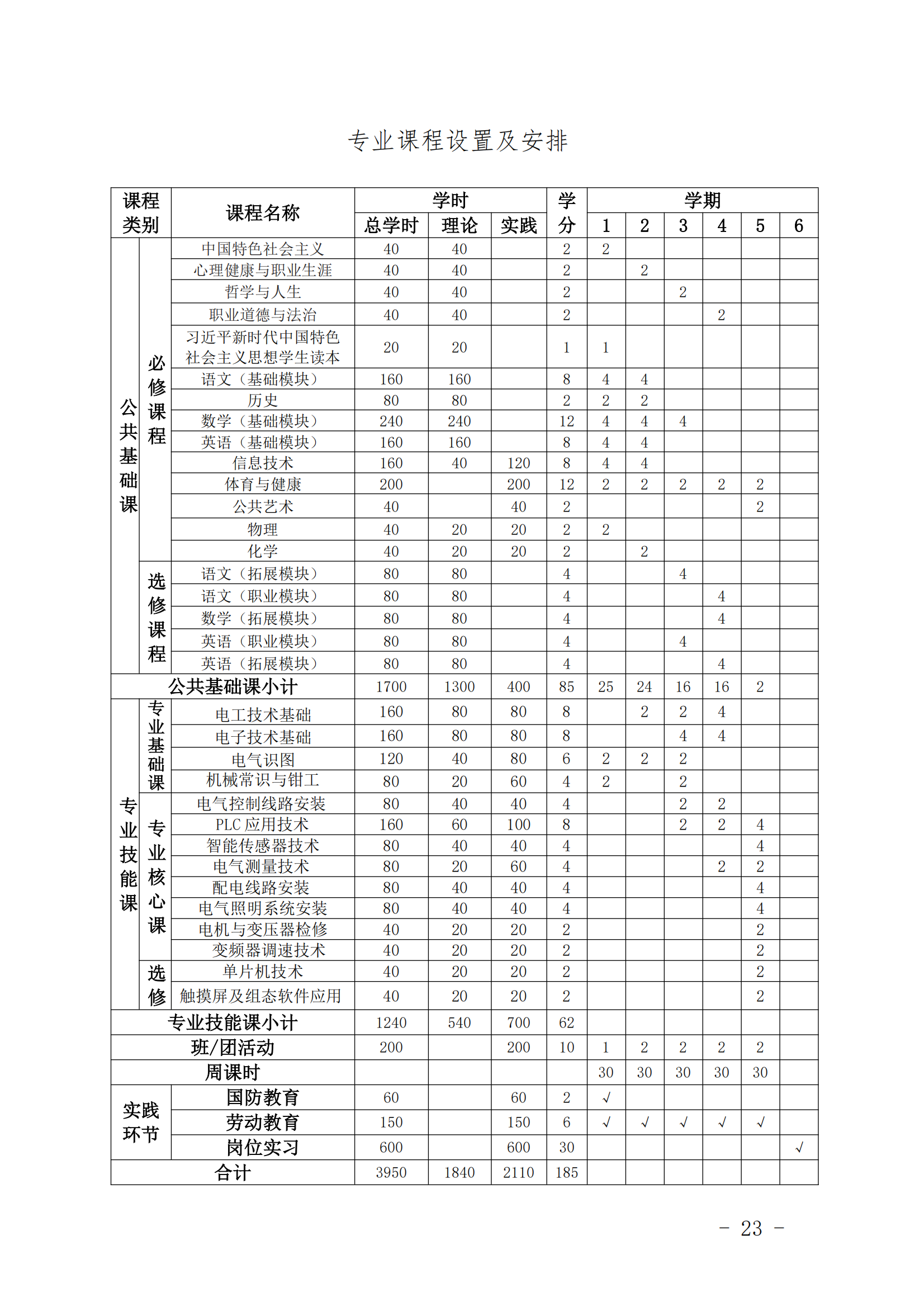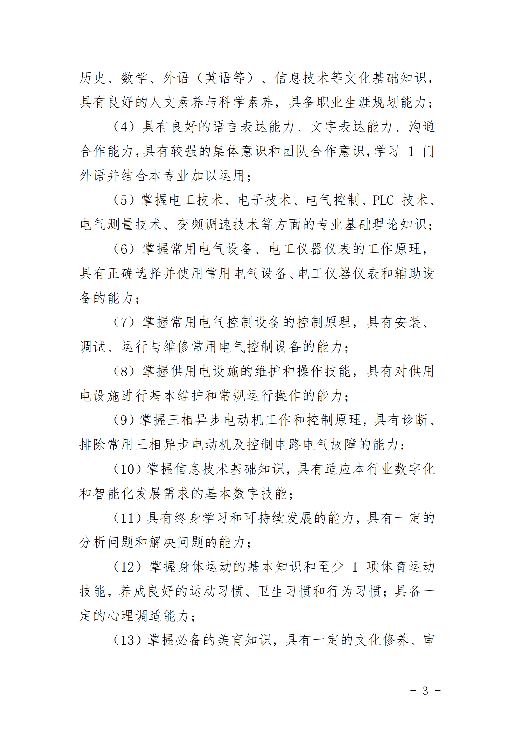 YABO.COM电气设备运行与控制专业人才培养方案